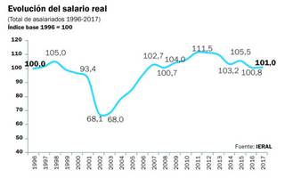 Así el salario real declinó un 4,5%, y en el promedio del año virtualmente no se alteró respecto a la base del último año de gobierno del kirchnerismo.