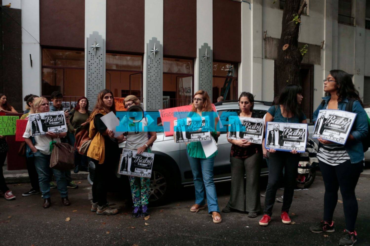 Este miércoles alrededor de las 17 horas, un grupo de mujeres entre las que se contaban representantes de diferentes movimientos feministas, se congregaron frente a la puerta del Teatro Metro -ubicado en calle 4 entre 51 y 53- para repudiar la contratación de Baby Etchecopar.