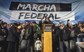 En la vereda de enfrente, literalmente, las organizaciones que protestaron en la Plaza de Mayo denunciaron que el rumbo económico de la gestión de Cambiemos no las beneficia, más allá de que mantiene los planes sociales que expandió el gobierno anterior.