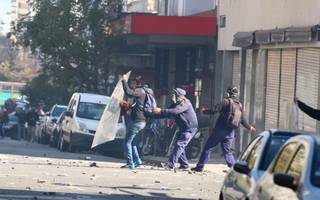 Las escenas de violencia se repitieron durante casi tres horas convirtiendo la zona en un campo de batalla por el que, entre los manifestantes y policías pretendían circular, confundidos, taxis, micros y autos particulares, entre quienes reinaba el desconcierto y el temor al toparse con la manifestación, en algunas arterias; con un cordón policial, en otras.
