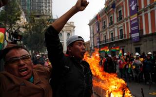 Los medios de prensa bolivianos y las redes sociales se llenaron de imágenes tomadas en Cochabamba y El Alto, en las que se ve a multitudes de personas en marcha hacia La Paz al grito de "guerra civil", muchos armados con palos u otros objetos contundentes, y con promesas de reposición para Morales.