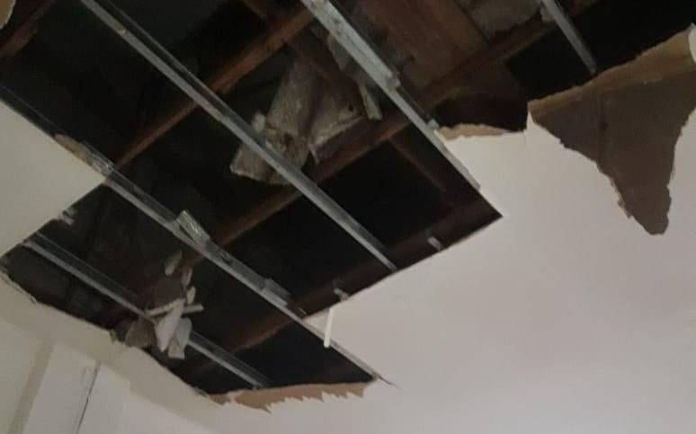 En el caso del Policlínico el accidente ocurrió en el consultorio de clínica médica, que en forma provisoria se halla en desuso. Tal como se detalló, los profesionales médicos que ingresaron al lugar se encontraron con cascotes y parte del techo caído cuando fueron a buscar una medicación. Suponen que el derrumbe se produjo a la madrugada, tras la lluvia torrencial del martes a la noche.