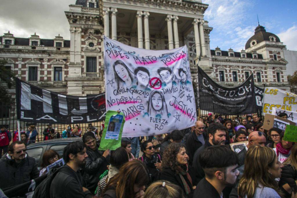 La movilización en La Plata estuvo encabezada por la madre de Camila López (13) y familiares de Danilo Sansone (13), Gonzalo Domínguez (14) y Aníbal Suárez (22), acompañados por representantes de organizaciones de derechos humanos y víctimas del “gatillo fácil”.