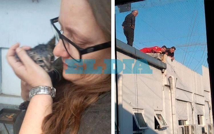 El rescate de un gatito, llevado a cabo por un equipo de bomberos, desató a lo largo de la tarde de ayer un momento de máxima tensión en el Ministerio de Seguridad de la Provincia de Buenos Aires, en La Plata. Gracias a la afortunada labor de los especialistas, la mascota pudo ser salvada y todo terminó con final feliz. Además, para coronar el exitoso rescate, una trabajadora de esa dependencia decidió a doptar al felino.