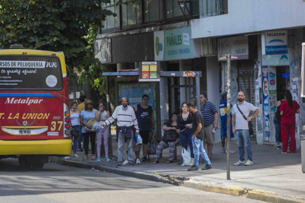 Largas filas en las paradas de colectivos de la ciudad, una postal de un viernes para el olvido en lo que a cuarentena se refiere / Demian Alday