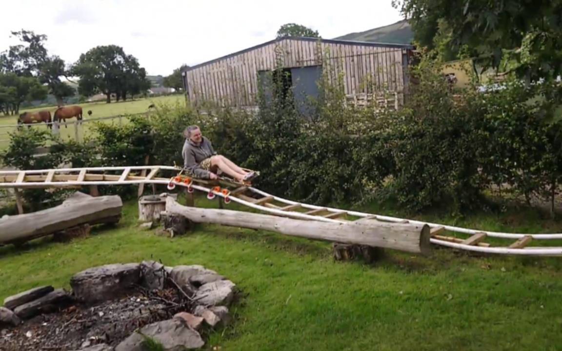 Un hombre galés aprovechó la cuarentena al máximo e hizo realidad el sueño de su sobrino al construir una montaña rusa en su patio trasero basada en los dibujos del niño de 11 años.