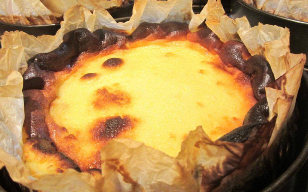 Hornear la tarta durante aproximadamente 90 minutos o hasta que se dore en la parte superior y la crema esté apenas blanda en el centro. Dejar enfriar en el molde. Pasar un cuchillo de sierra todo alrededor, entre la tarta y el molde, y desmoldar. Cortar y servir.