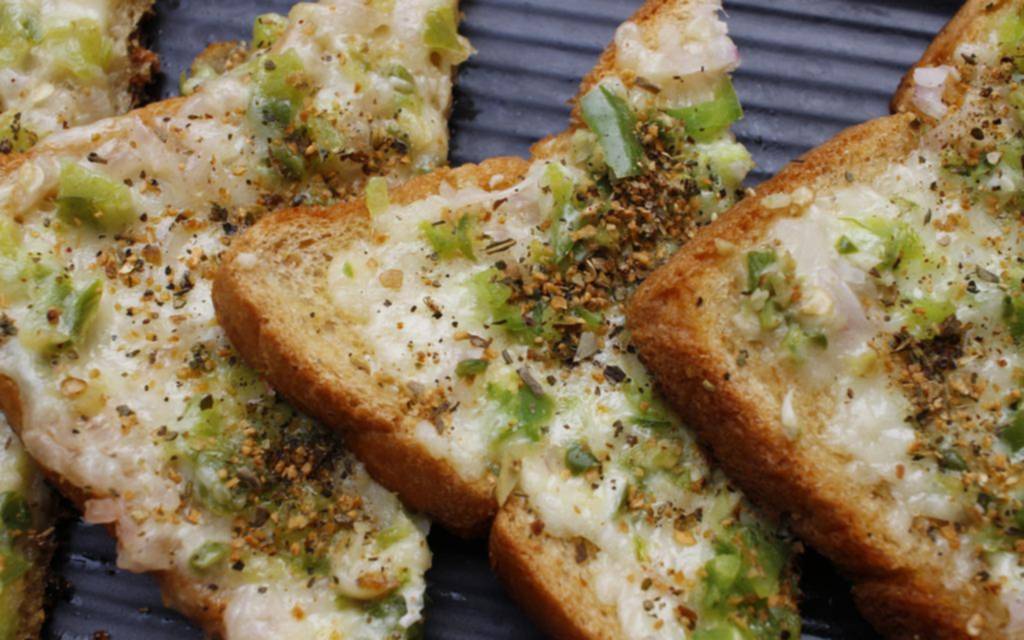 Untar las tajadas de pan con la mezcla, de un solo lado.