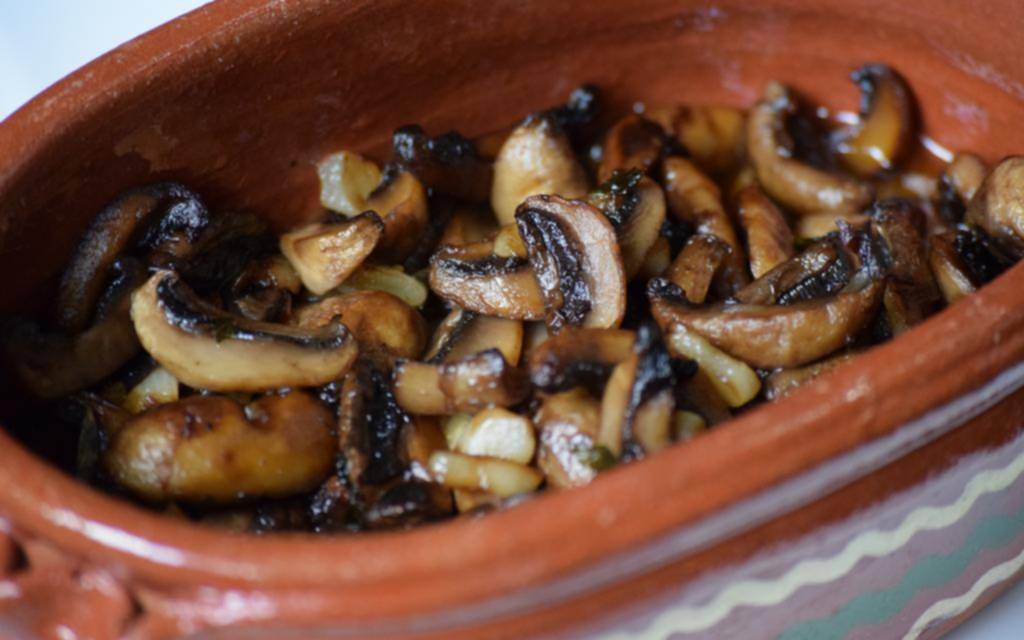 Pelar el ajo y rehogarlo en una cacerola con la margarina. Agregar los champiñones y rehogar 4 minutos a fuego mediano, revolviendo. Condimentar con sal y pimienta y cocinar 4 minutos más. Espolvorear con la harina y mezclar bien. Agregar la leche y eliminar el diente de ajo.