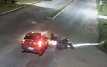 Según se ve en las cámaras de seguridad municipales, un auto chocó a una moto provocando que el conductor del rodado menor caiga. Según se puede observar en las imágenes, el automóvil rojo que circulaba por 31 impactó a una moto que intentó doblar en 514. En tanto, al observar lo acontecido en tiempo real, el Centro de Operaciones y Monitoreo (COM) de la Comuna dio aviso al 911.