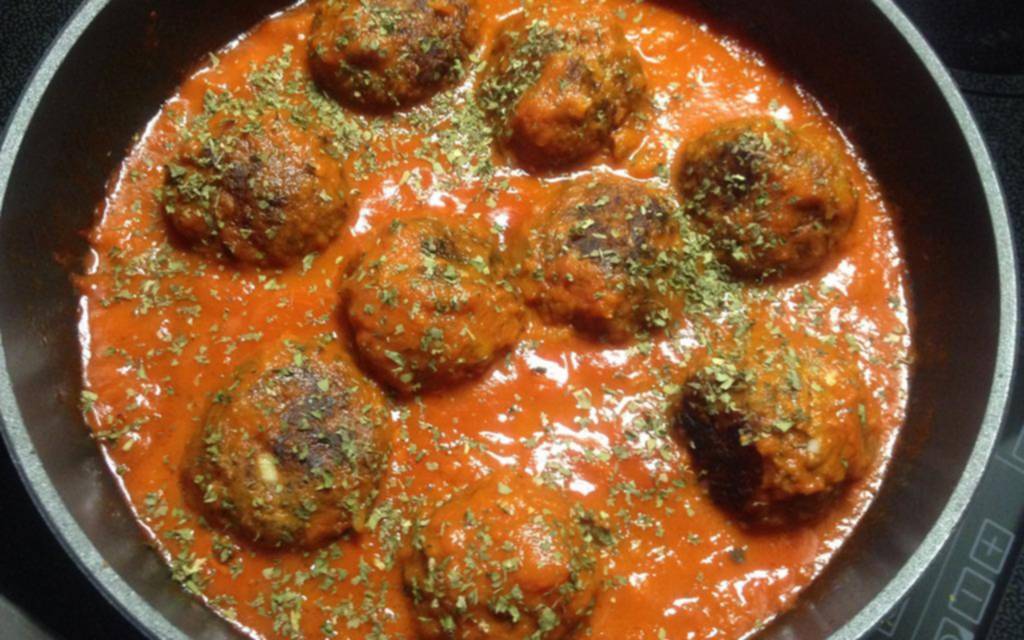 Con las manos humedecidas, tomar pequeñas porciones y formar albóndigas, unas 25-30 unidades. Calentar aceite de oliva en una sartén y freír las albóndigas en una o dos tandas, dejando que se doren bien por todos los lados. Retirar y reservar sobre papel absorbente.