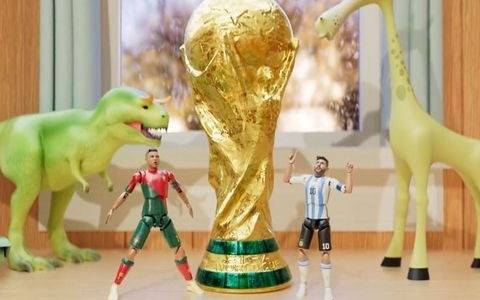 El divertido y genial video muestra a un niño jugando en su cuarto con dos de sus juguetes, réplicas exactas de Lionel Messi y del portugués Cristiano Ronaldo, quienes discuten por quien es “the GOAT” (el mejor de todos los tiempos). Cuando el chico abandona el cuarto, los juguetes “cobran vida” y empieza una escaramuza por el balón del mundial, con el balón incluso golpeando la icónica imagen de “La mano de Dios”, con Diego ganándole en la altura a Peter Shilton.