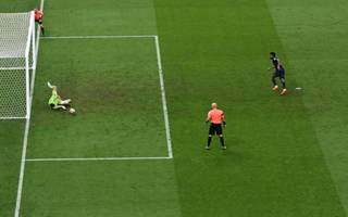 Pie izquierdo abierto, toque con fineza y cargado de calidad, para así hacer imposible la reincorporación del muy buen golero del Tottenham inglés. Otra vez el turno de Francia de hacer lo suyo.