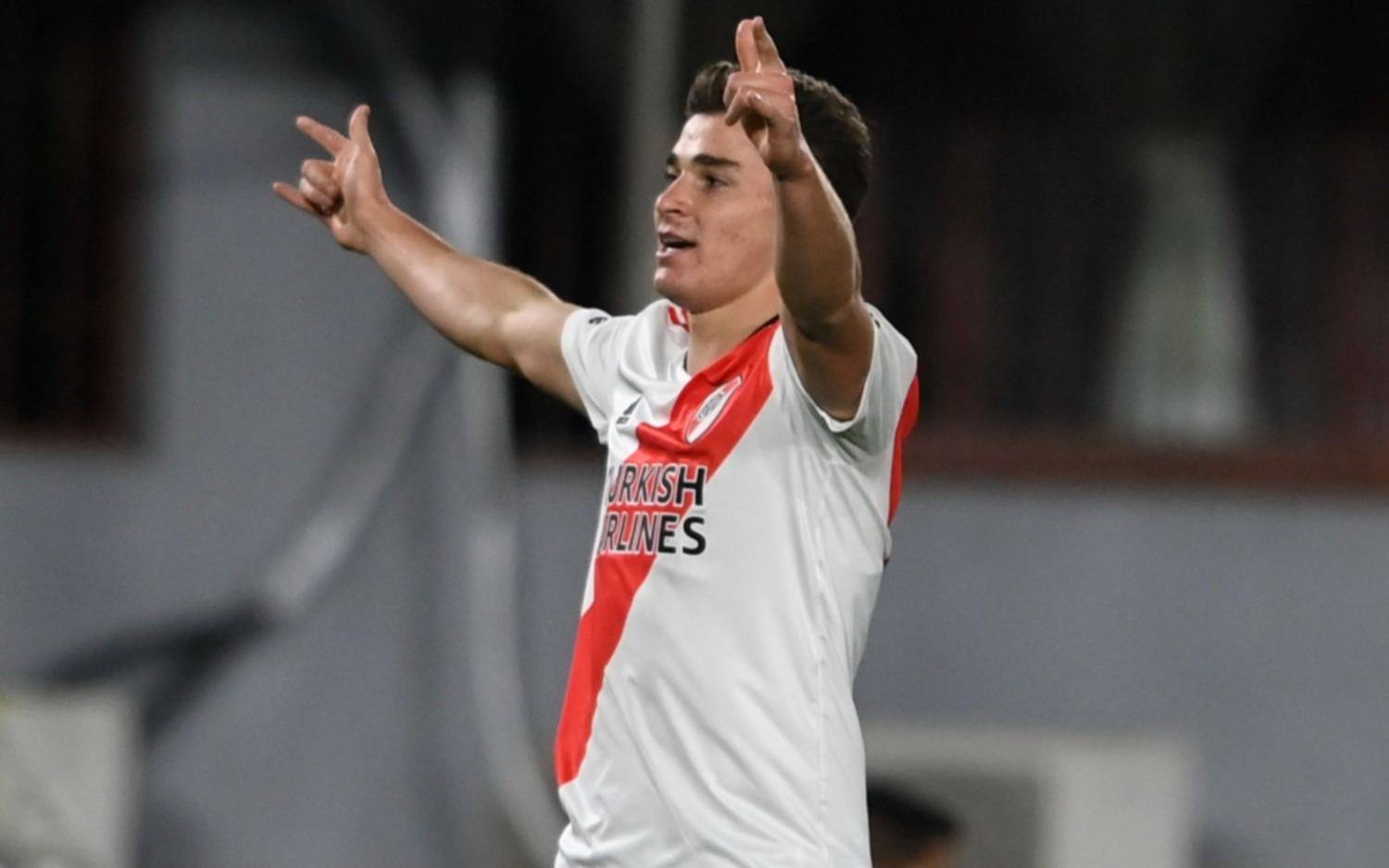 La hinchada de River ovacionó al equipo, pero principalmente a Álvarez, el joven goleador que está disputando sus últimos partidos en el club y se llevó dos pelotas por los seis gritos, que seguramente guardará en su casa de Manchester, cuando se incorpore al City en julio próximo.