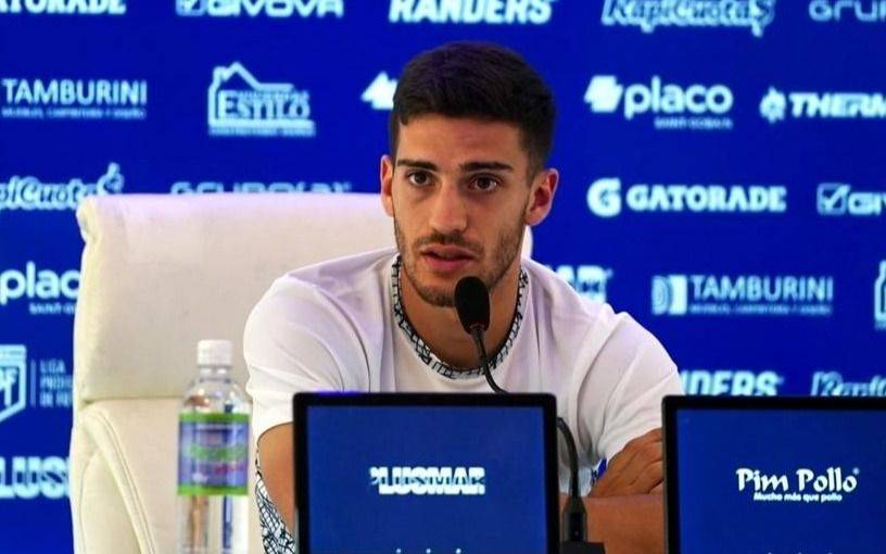 Matías Melluso durante la conferencia de prensa brindada ayer en Estancia Chica / Prensa Gimnasia