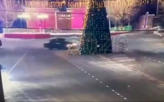 ¿“Grinch” al volante? Derribó un árbol de Navidad gigante con su auto y se volvió viral