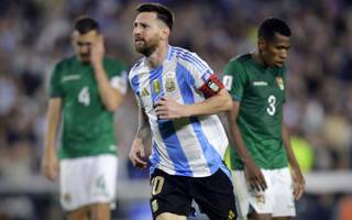 messi festeja el primero de los tres goles a bolivia en un gran partido de la selección / fotobaires
