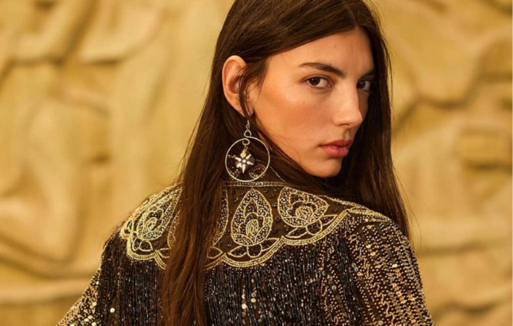 Chaleco Night, de largo crop confeccionado en creppe y bordado en mostacillas / Rapsodia