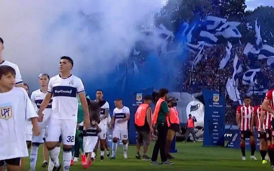 En la edición 168 del clásico de La Plata entre Gimnasia y Estudiantes, el público tripero cubrió las tribunas con banderas, tirantes plásticos y un nube intensa de humo azul y blanco desde el interior del campo de juego.