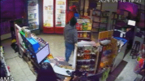 Tras ellos los ladrones la obligan a entregarle dinero de la caja registradora y al mismo tiempo toman todo tipo de mercadería.