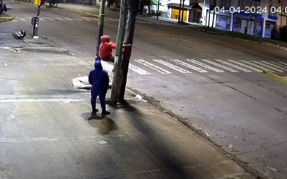Mientras uno operaba de campana, el otro implicado se trepó como un gato al poste de luz y cortó el cableado de la luminaria que alumbraba la vereda. Rápidamente se dieron a la fuga del lugar y continúan prófugos.