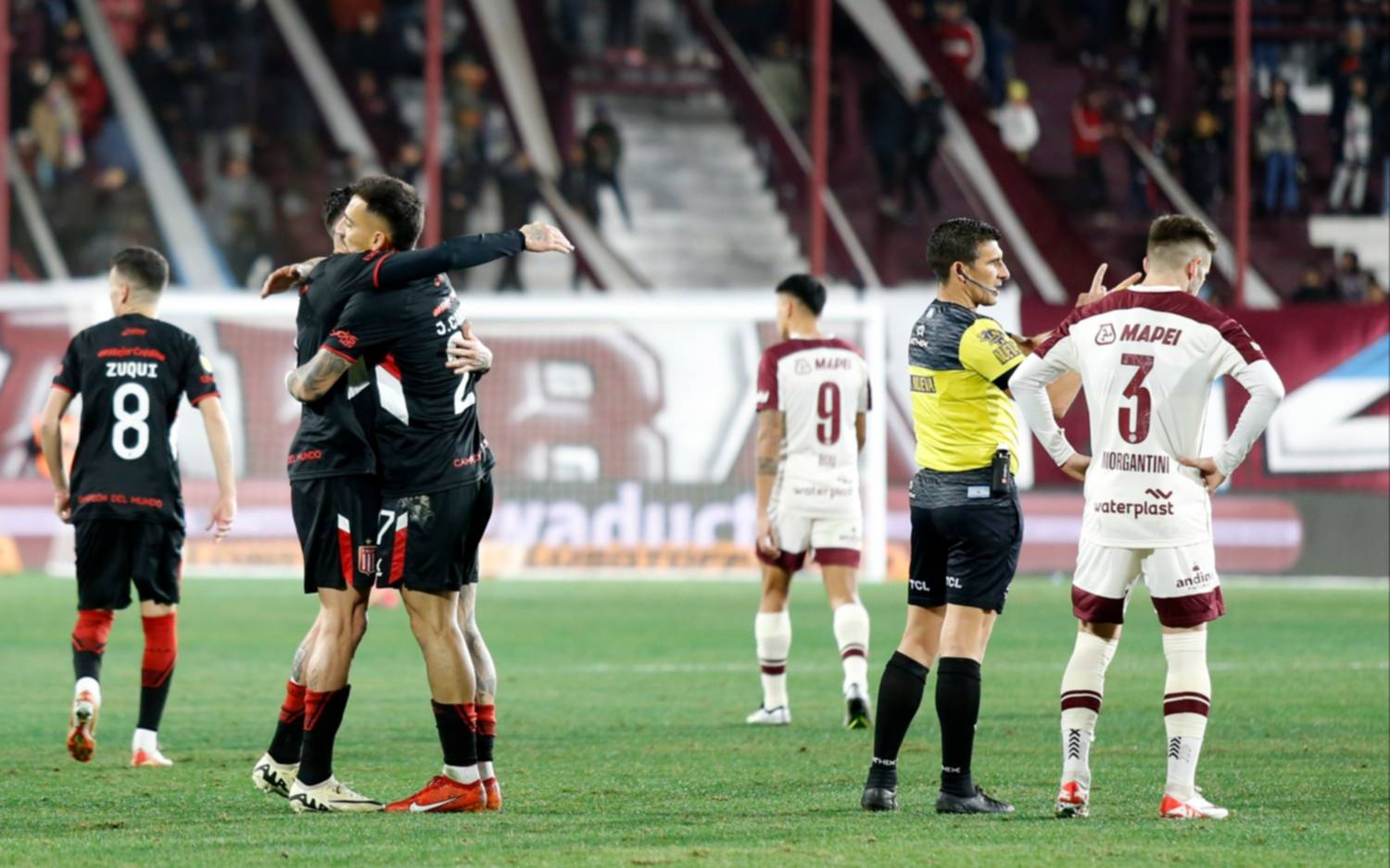 Estudiantes alcanzó el empate a los 21 minutos gracias un centro perfecto de Edwuin Cetré y a una aparición notable de Eros Mancuso como si fuera el centrodelantero del equipo. Lanús marcó mal y el defensor Pincha facturó conectando de aire.
