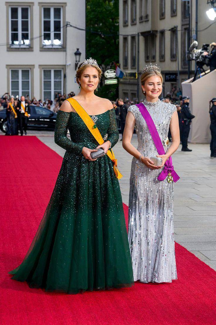 El viernes finalizó con una cena de gala. El protagonismo se lo robaron las jóvenes herederas Amalia, de los Países Bajos, y Elizabeth, de Bélgica. Ya las habíamos visto en otras cenas pero es que juntas, con esos vestidos que no tenían ni un centímetro de tela sin brillos y las joyas de la corona, se necesitaban anteojos negros para no encandilarse. Su presencia, de todas formas, no opacó a la flamante gran duquesa Estefanía que repitió, a la noche, el vestido de la mañana, un trabajadísimo vestido de alta costura de Elie Saab de color celeste como la bandera de los Nassau.