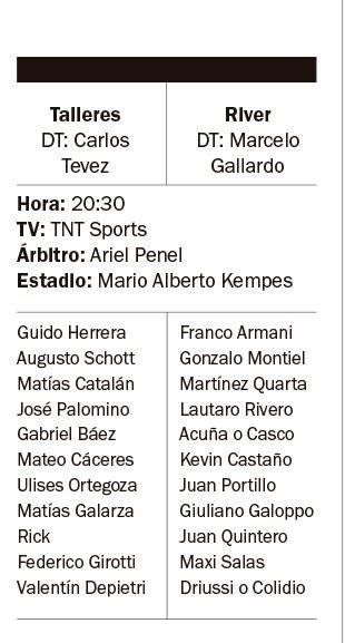 River, que atraviesa un flojísimo momento luego de perder seis de sus últimos siete partidos, tendrá una visita de riesgo, cuando esta noche enfrente a Talleres, por la 13ª fecha del Torneo Clausura.