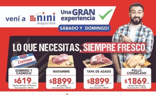 Nini (25 y 520) te espera para aprovechar todas sus ofertas y promociones en diversos productos y llevarte todo lo que necesitás. De viernes a domingo vas a encontrar precios mayoristas y grandes descuentos. Además en NINI vas a ahorrar todos los días.