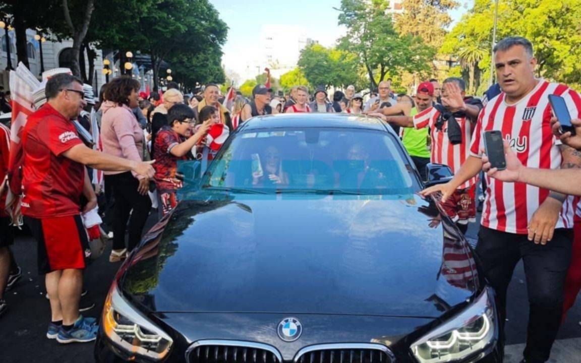 El atacante colombiano, que abrió el marcador del clásico con un gol de cabeza, apareció en un automóvil importado de color negro y se llevó el cariño de los hinchas.