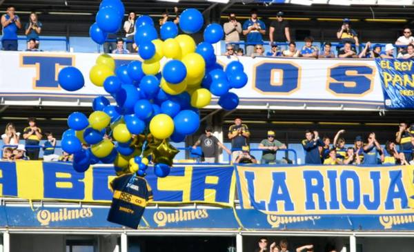 Hubo cantitos dedicados al experimentado entrenador y además se lanzó una camiseta del Xeneize con globos hacia el cielo
