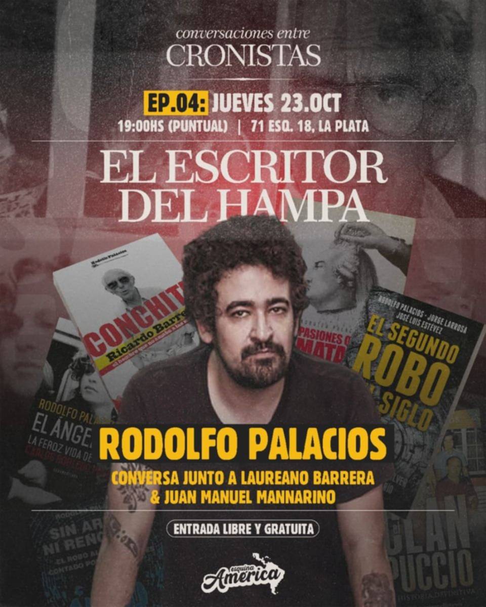 Este jueves 23 de octubre a las 19 horas, el periodista y escritor Rodolfo Palacios será el protagonista del episodio 4 del ciclo “Conversaciones entre Cronistas”, que se realizará en 71 esquina 18, La Plata, en el espacio cultural Esquina América.