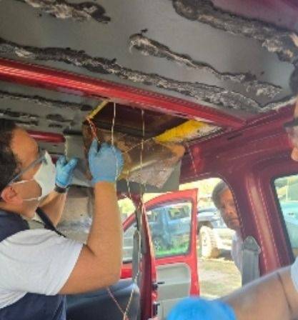 Posteriormente, se realizó una incisión en el techo. De allí se extrajo con un objeto punzante una muestra de un polvo blanco, que tras realizar la prueba de narcotest, resultó ser cocaína. La Aduana dio aviso a la Fiscalía Federal Descentralizada de Orán, a cargo de los fiscales Dr. José Luis Bruno y Dr. Marcos César Romero, quienes ordenaron extraer la sustancia del techo del rodado. En total, se encontraron 54 paquetes rectangulares de color amarillo que en su conjunto contenían 56,8 kilos de esa droga.