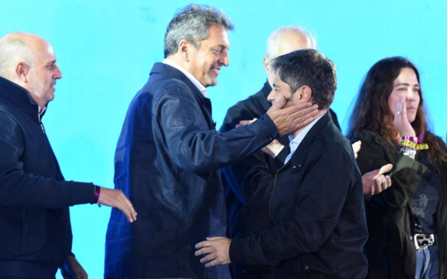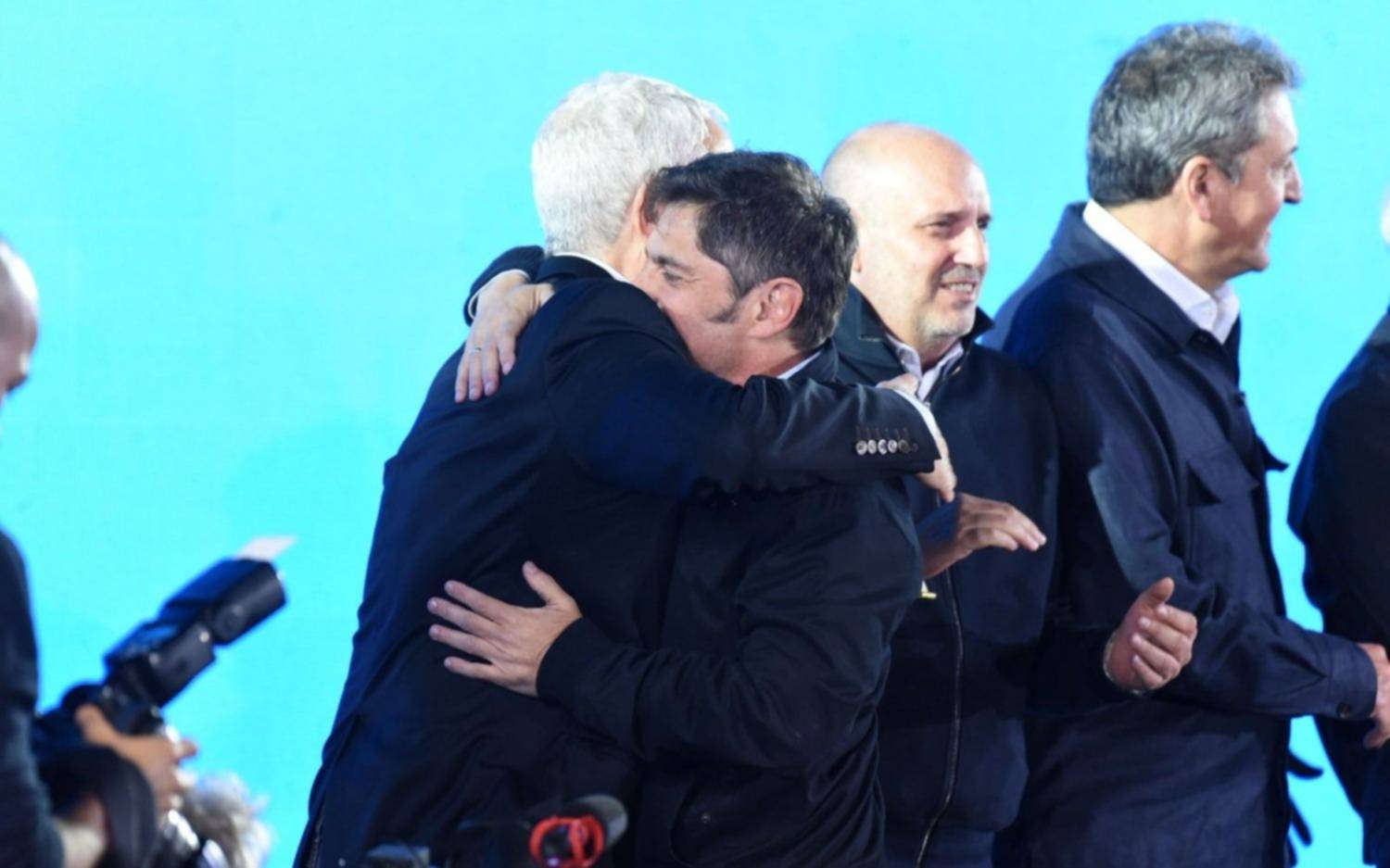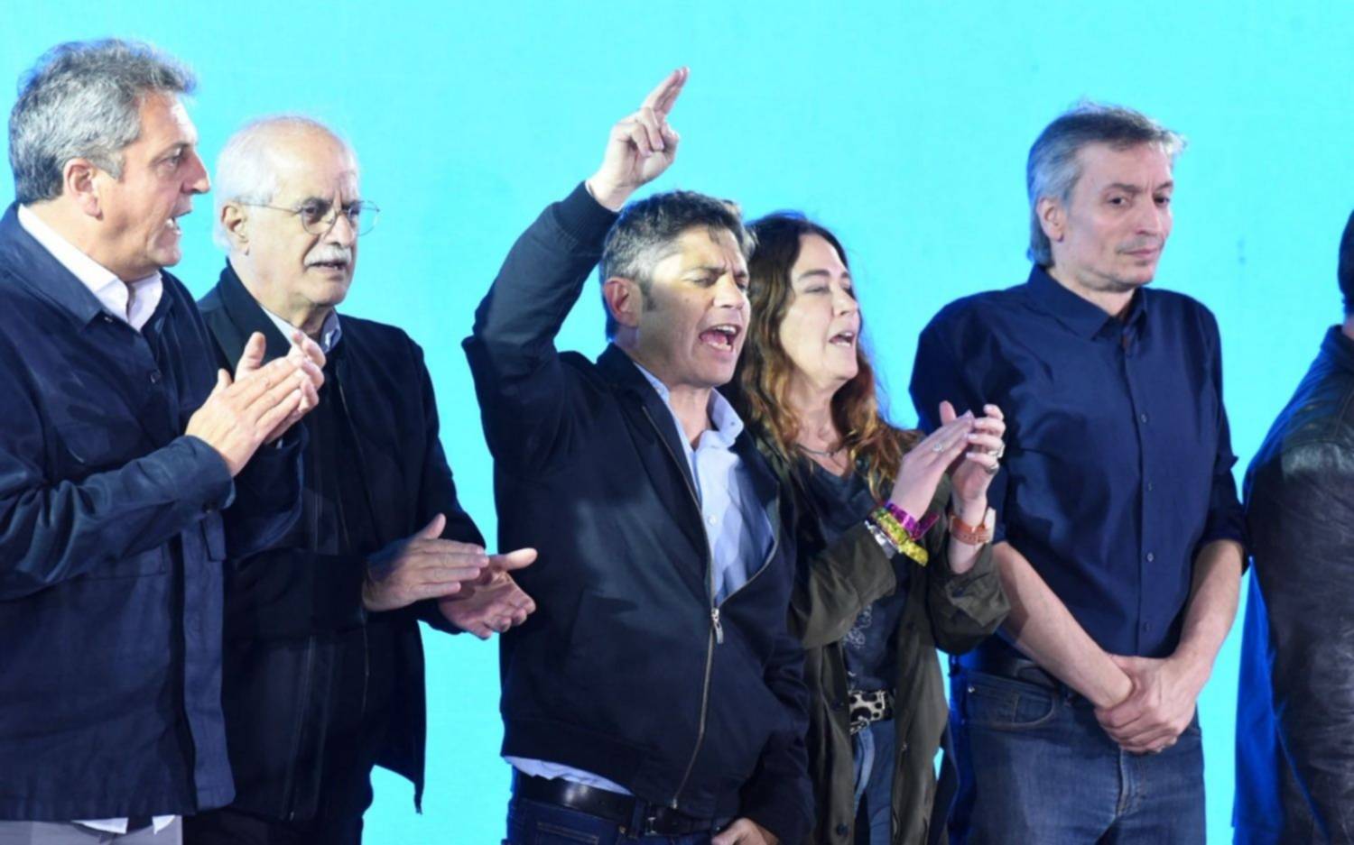 Axel Kicillof, al tomar la palabra, expresó: "Quiero agradecer a los candidatos de Fuerza Patria, a Sergio Massa, a Máximo Kirchner, a toda la dirigencia, organizaciones sindicales y movimientos sociales. Especialmente, a Cristina".