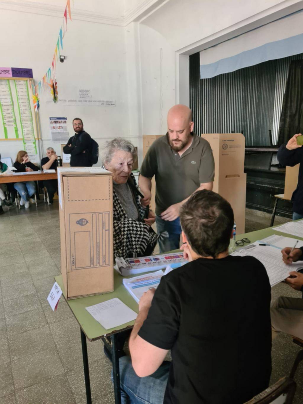 Cuando llegó su turno, Amelia avanzó lentamente hacia el biombo que reemplaza los cuartos oscuros siempre del brazo de su nieto, su mejor guardaespaldas. Después salió con la boleta en la mano, la besó y la colocó en la urna mientras los presentes estallaban en aplausos. Algunos grabaron la escena con el celular, otros simplemente se emocionaron.