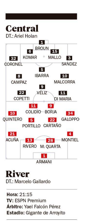 River afrontará un difícil compromiso en Rosario ante el Central de Di María