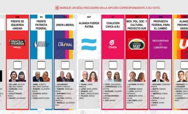 En esa única boleta, la categoría de cargos (diputados nacionales, en el caso de la Provincia) estará visible en forma horizontal (fila), mientras que las listas de candidatos por agrupación se ubicarán en forma vertical (columnas). En cada una de estas franjas verticales se identificará cada fuerza con su nombre, número de lista, logotipo y color, junto a la fotografía de los dos primeros candidatos y los nombres y apellidos de los primeros cinco postulantes. Justo a la mitad de la columna (entre el nombre de la agrupación y la foto de los candidatos) habrá un casillero en blanco para marcar el voto.