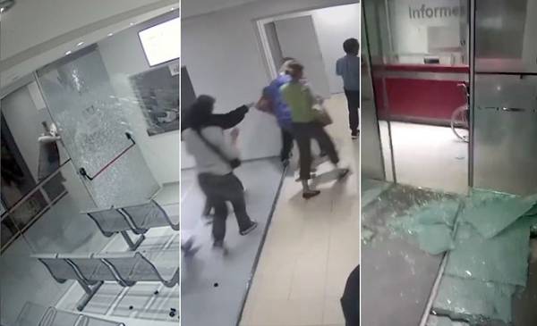 El episodio quedó registrado por las cámaras de seguridad de la clínica, que captaron cómo el sujeto golpeó repetidamente las ventanas y las puertas de acceso con una barra metálica.
