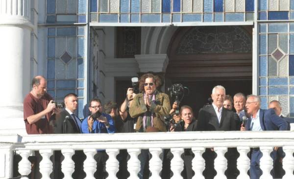 Parado en el balcón del Salón Dorado Municipal, con la Catedral dándole marco a un atardecer primaveral, Johnny Depp se pronunció ayer ante una multitud de platenses que, con fotos, carteles y disfraces que permanecieron impolutos a pesar del calor, estaban coreando su nombre y gritando por él. “Este es un momento que quedará grabado en mi mente para siempre”, les regaló, emocionado, tomándose las manos en señal de rezo, y apenas después de haberles agradecido por tanta demostración de amor: “Me han salvado”.