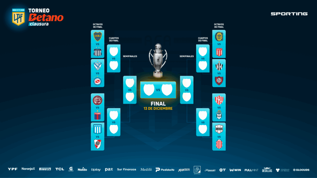 La Liga Profesional confirmó oficialmente los días y horarios de los Octavos de Final del Torneo Clausura, que se disputarán entre el sábado 22 y el miércoles 26, con cruces atractivos y varios clásicos recientes reeditados. Así quedó diagramada la agenda completa: