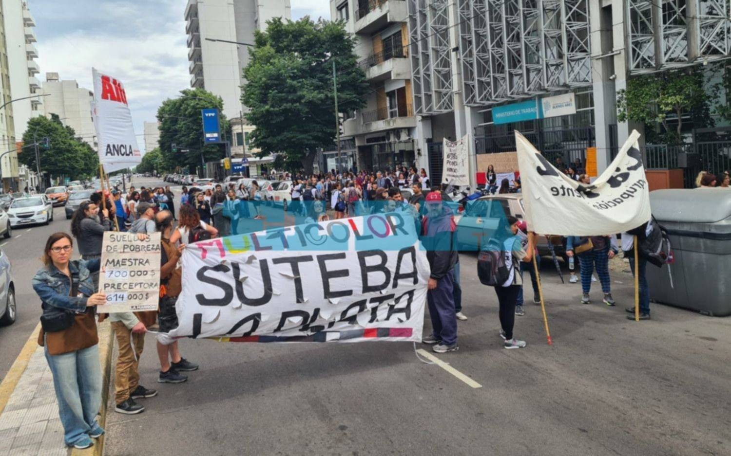 En la previa, un grupo de docentes se manifestó en las puertas del ministerio para reclamar "por la dignidad del salario docente, que atraviesa una emergencia salarial. El ministro de economía de la Provincia (López) dice que hay plata y que hay superávit fiscal", dijo Claudio Vigne, Secretario General de la Asociación de maestros bonaerenses. "Necesitamos de forma urgente la recomposición de los salarios.", agregó en diálogo con EL DIA. Más tarde, los manifestantes cortaron ambas manos de la avenida 7 para profundizar la protesta.