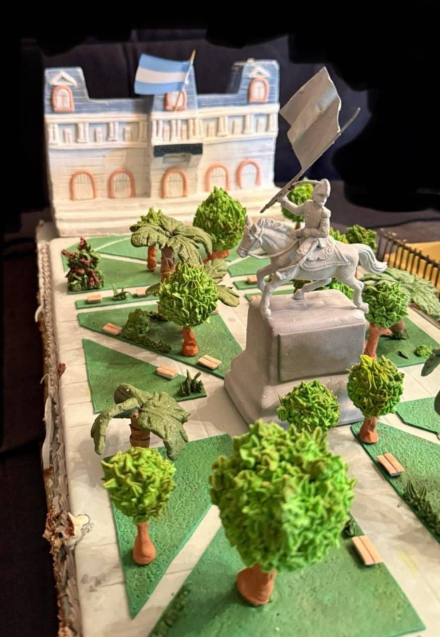 La torta para celebrar el 143º cumpleaños de nuestra Ciudad representó al detalle la nueva Plaza San Martín, el edificio de la Gobernación y el Pasaje Dardo Rocha. Se trató de un bizcocho blanco relleno con mousse de chocolate y otro de crema Bariloche, que fue elaborado desde el Sindicato de Pasteleros. El pastel completo, para 545 invitados, pesó 98 kilos y tuvo que ser levantado por seis personas.