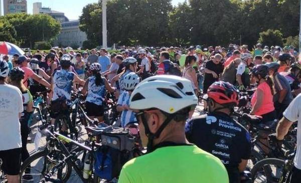 Ciclistas de la Ciudad, durante un encuentro en Plaza Moreno para reclamar seguridad / EL DIA