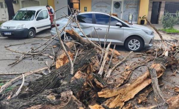 El fuerte viento y las lluvias se tradujeron en destrozos que obligaron a la movilización de equipos municipales. Uno de los incidentes ocurrió en la calle 33 entre 119 y 120, en el Barrio Hipódromo, donde un árbol de gran porte se desplomó sobre un vehículo estacionado, dejándolo con daños en distintas partes.