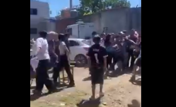 En cuestión de segundos, la discusión verbal derivó en una trifulca generalizada dentro del predio. Testigos aseguraron que hubo puñetazos, empujones y hasta sillas arrojadas en medio del caos. La escena empeoró rápidamente cuando algunos comenzaron a lanzar piedras y otros exhibieron palos e incluso armas blancas.