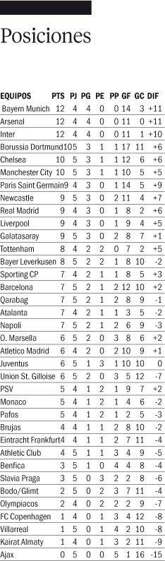 Hoy:Pafos-Mónaco; Kobenhavn-Kairat; Olympiacos-Real Madrid; Sporting Lisboa-Brujas; Frankfurt-Atalanta; Liverpool-PSV; Atlético Madrid-Inter; Arsenal-Bayern; y PSG-Tottenham.