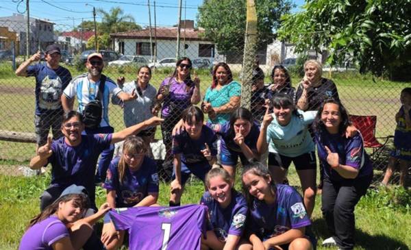 Las nenas de la Sub 14 de Lealtad, y detrás, los papis y mamis
