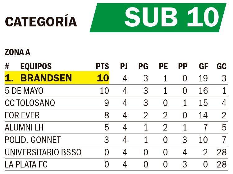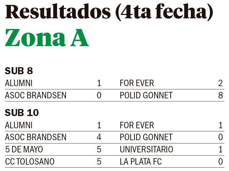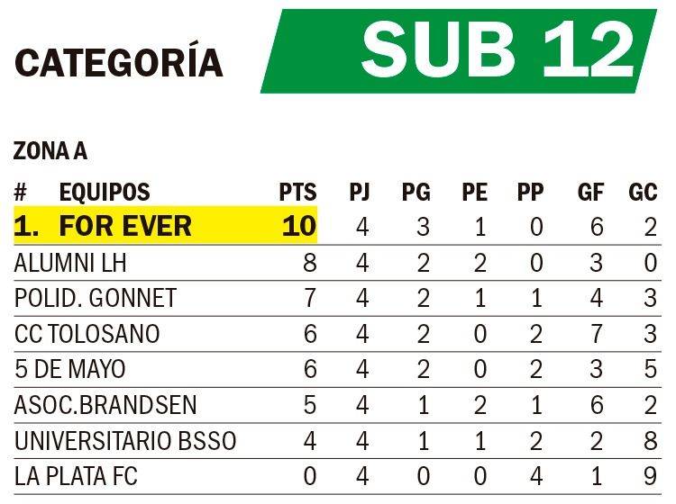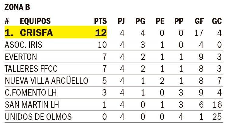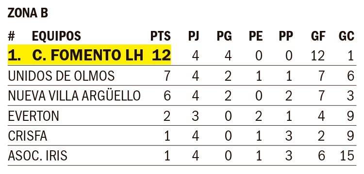 Mientras que la Sub 12 de For Ever, lidera la tabla con 10 unidades. En lo que respecta a la Zona B, el +35 del Fomento también alcanzó el puntaje ideal (12) en cuatro presentaciones. Y la Sub 12 de CRISFA es otro de los equipos que se mantiene invicto en la competencia, y con 12 puntos en cuatro partidos.