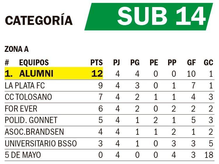 Cumplida una nueva fecha del Apertura infanto-juvenil de la Liga Amateur Platense, las nenas de la Sub 14 de Alumni abrocharon la cuarta victoria en fila y se consolidan al frente de las posiciones con puntaje ideal (12) en la Zona A.