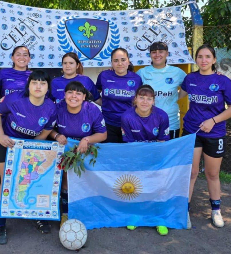 La Primera de Deportivo Lealtad posó antes del partido con la bandera argentina, recordando el Día de la Soberanía